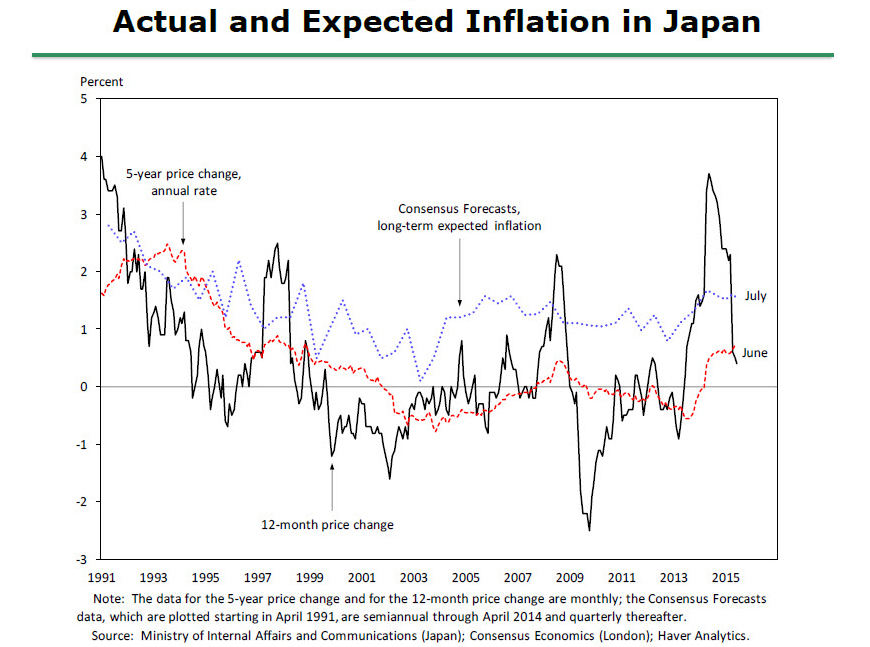 “In Japan, inflation expectation stayed low, as the [Bank of Japan] communicated and acted as if the target was zero,” he explained. “In the U.S., the expected inflation rate is firmly anchored.”