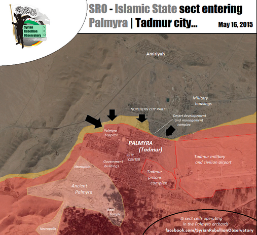 Update 1: Late Saturday Syrian troops recaptured two hills from the Islamic State, Gov. Talal Barazi of Homs province told the Associated Press. He said that army reinforcements are being sent to shore up existing troops. “Palmyra is safe and the road linking Homs with Palmyra is absolutely safe,” he said. The attack on Palmyra in Syria was part of a two-pronged assault by the Islamic State, whose forces took the capital of Iraq’s largest province today.