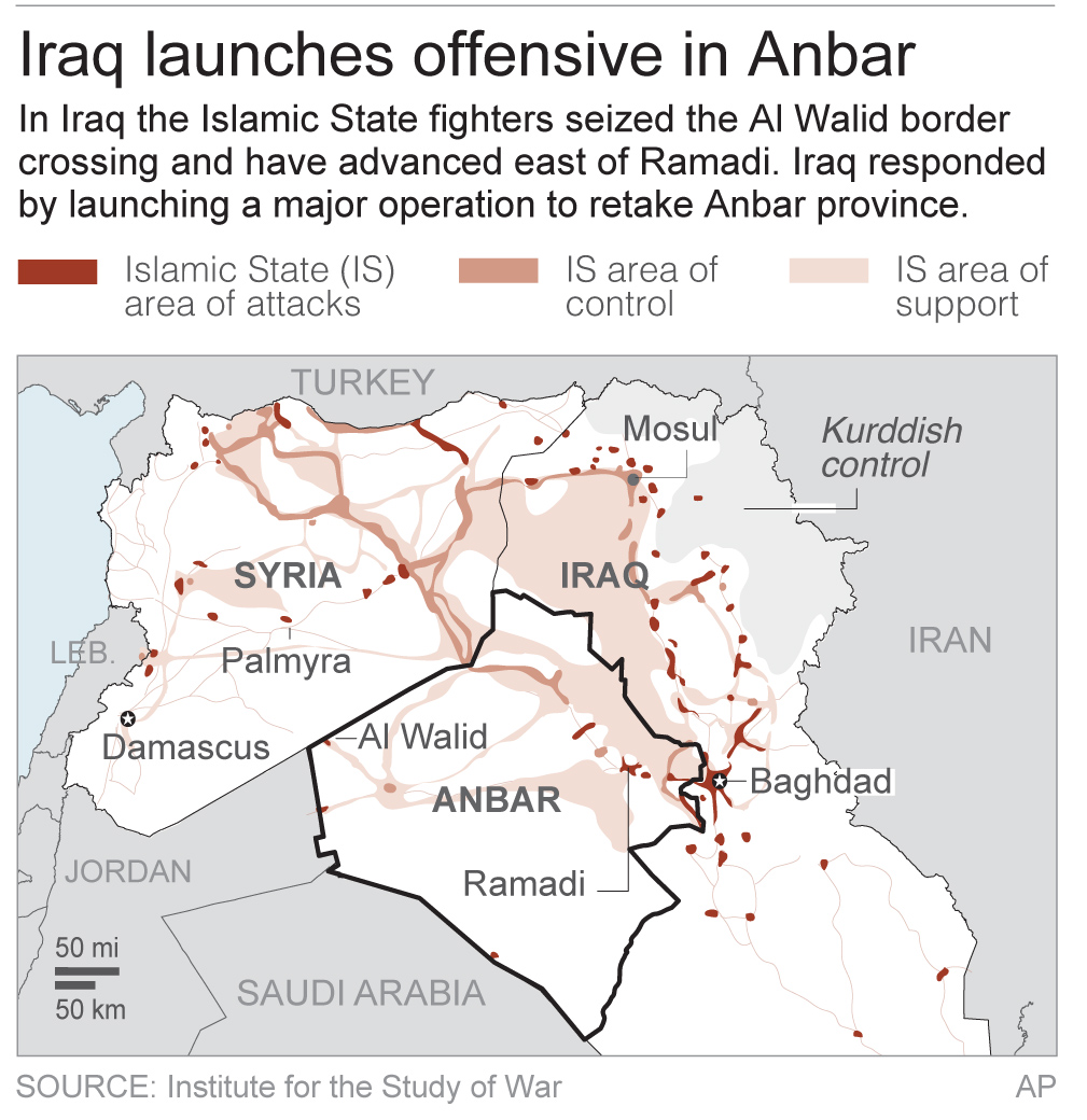 Warren described the initial movements as shaping operations, such as targeted airstrikes and ground operations to defend or remove key supply and communications routes. Iraqi forces and Islamic State fighters are sending small numbers of forces to probe each others’ positions and troop levels in the 20-mile zone that separates Ramadi from Habbaniyah, Warren said.