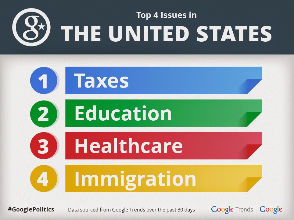 Taxes, education, healthcare and immigration were the four most-searched issues of this midterm cycle, according to Google.