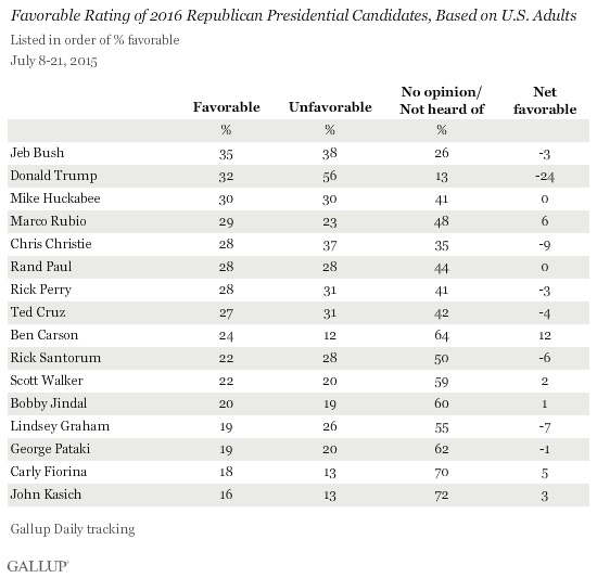 As the best known candidate, Gallup found that Clinton still maintains the highest absolute favorable rating among her rivals for the 2016 Democratic nomination.