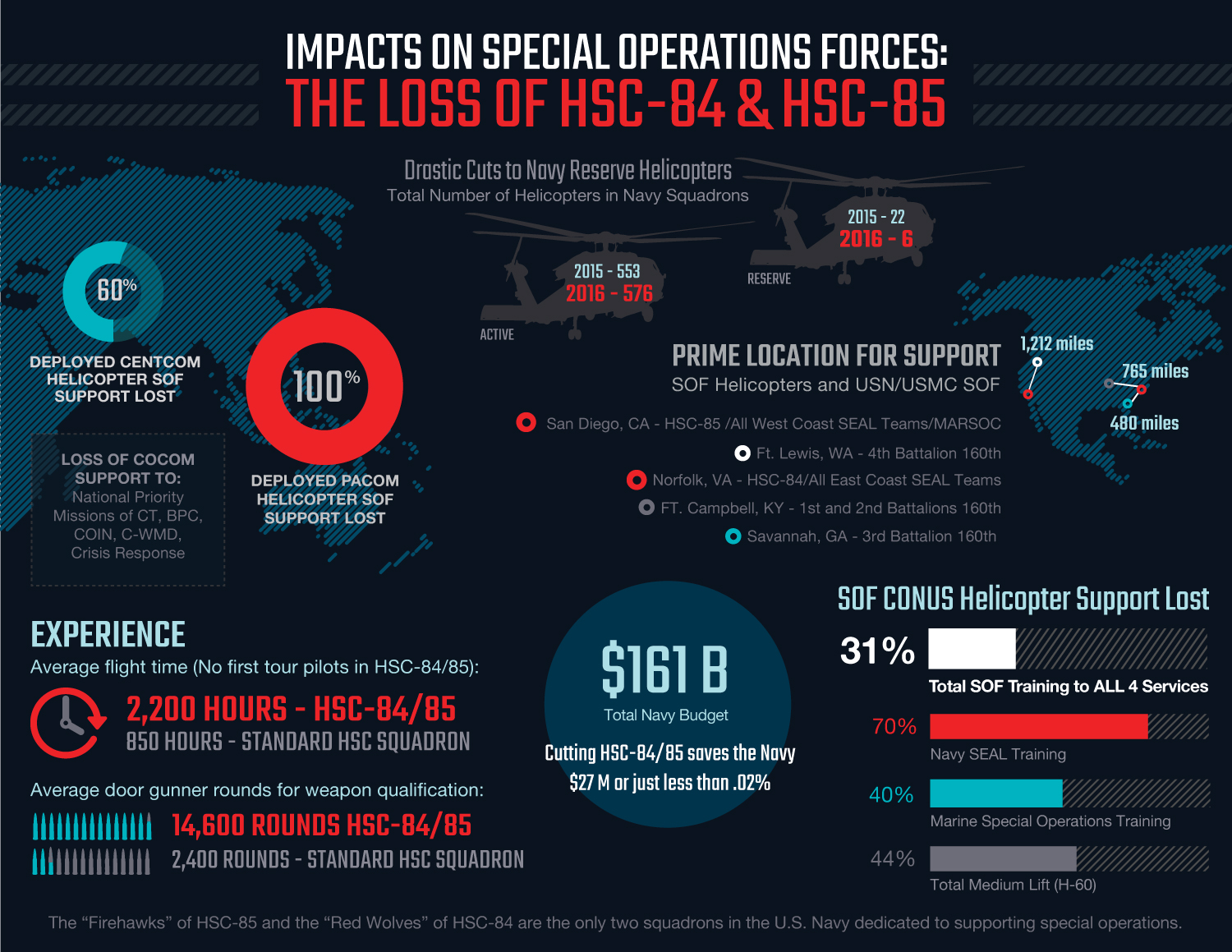 The Navy, too, decided it could no longer foot the bill. In a budget-driven decision, it decided that “continued, yet limited special operations support … will still be achieved with the remaining HSC squadrons,” said Navy spokesman Lt. Robert Myers, referring to regular Navy squadrons. The helicopters in the two spec ops squadrons, however, are specifically configured for combat search and rescue and other specialized missions.