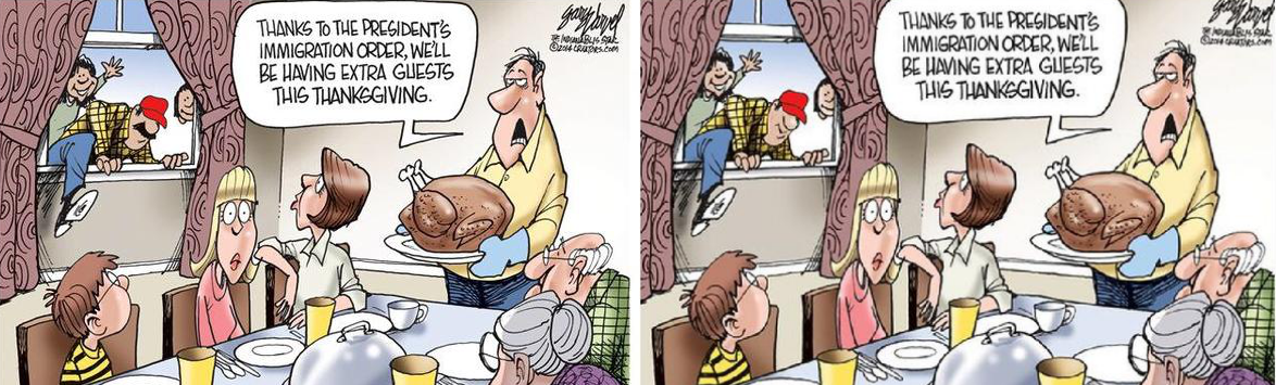 “Thanks to the president’s immigration order, we’ll be having extra guests this Thanksgiving,” one of the characters in the cartoon said, a clear reference to President Obama’s recent executive action on immigration.