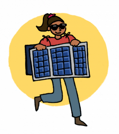 The department’s proposal for a solar panel is to wear a sandwich board that has drawings on it to make it look like a solar panel.