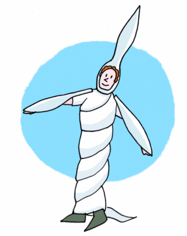 Another idea is to go as a wind turbine, which involves cutting out windmill blades out of foam and then wrapping yourself in a white towel.