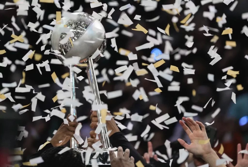 The New York Liberty hold up the championship trophy after defeating the Minnesota Lynx in Game 5 of the WNBA basketball final series, Sunday, Oct. 20, 2024, in New York. (AP Photo/Pamela Smith)