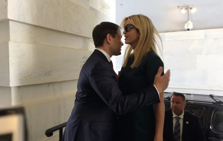 Marco Rubio responds to awkward hug with Ivanka Trump