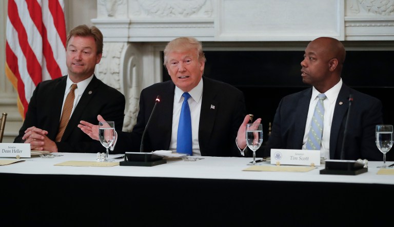 Trump asks Dean Heller if ‘he wants to remain a senator’ while sitting next to him